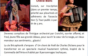La cie Bricophonik s’empare d’ Un chant de Noël de Charles Dickens pour le transformer en un spectacle musical hautement rythmé, inspiré de la Commedia dell’Arte et habité par 8 personnages loufoques.