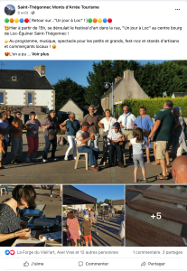 La page Facebook de Saint-Thégonnec compte 1800 fans au 31/08.. Les posts qui ont fait le plus réagir la communauté cet été concernent les publications sur les événements et animations comme « Tu fais quoi ce week-end ».