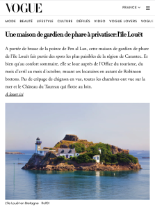 - Vogue : article “Bretagne : les adresses à connaître cet été” avec l’île Louët (mars 2022)