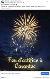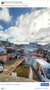 La page Facebook de Plougasnou atteint 6137 abonnés en cette fin d’été. Nous pouvons noter de bons retours en commentaires sous les posts concernant les animations à Plougasnou : Place aux Mômes et Mardis de Plougasnou. Les publications avec des photos et vidéos fonctionnent très bien.