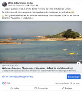 En cette fin d’été, la page Facebook de l’Office de tourisme de Morlaix comptabilise 6 800 abonnés. Les posts sur les webcams, idées et bons plans rando, les animations du week-end et de la semaine, les temps forts sur la destination ont été très appréciés, ainsi que ceux illustrés avec plusieurs visuels de qualité.