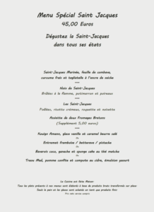 La Maison de Kerdiès propose un menu spécial St Jacques à 45€.